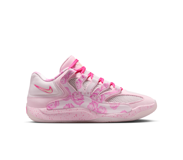 Kevin Durant KD18 « Aunt Pearl » Chaussures de basketball Tante Pearl est une source d'inspiration pour KD, un phare dans la nuit qui l'a poussé à se surpasser. Son amour et son héritage perdureront à jamais à travers son neveu et la famille Durant. Ce modèle spécial entièrement rose rend hommage à Tante Pearl, décédée d'un cancer du poumon en 2000, et nous inspire tous à poursuivre le combat...