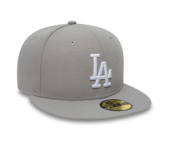 Casquette 59FIFTY Fitted LA Dodgers MLB Essential Gris Logo d'équipe à l'avant Logo de la MLB à l'arrière New Era Flag brodé à gauche Couronne complète et structurée Taille ajustée Visière plate 100 % polyester