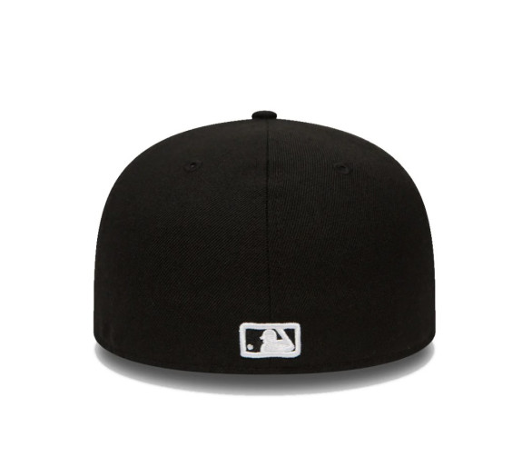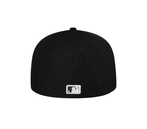 Casquette 59FIFTY Fitted New York Yankees Black White Logo d'équipe à l'avant Logo de la MLB à l'arrière New Era Flag brodé à gauche Couronne complète et structurée Taille ajustée Visière plate 100 % polyester
