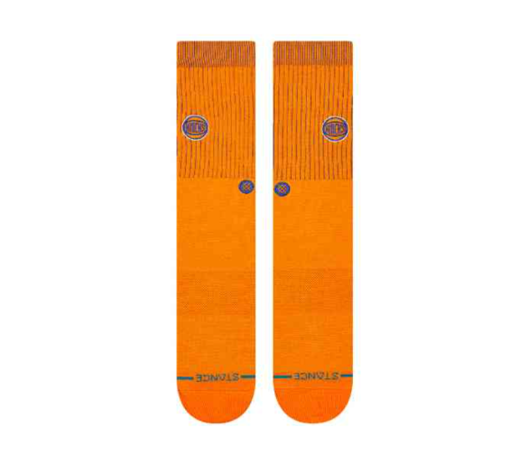 Chaussettes NBA - Style : Crew - Matière : Mélange de coton peigné Ce sont les chaussettes de l'équipe NBA des New York Knicks, basée à New York. Les côtes extensibles épousent parfaitement le mollet pour un confort optimal, ni trop serré, ni trop lâche. Les orteils et le talon, souvent sujets aux douleurs aux pieds, sont dotés d'un tissu éponge matelassé pour une meilleure absorption de...