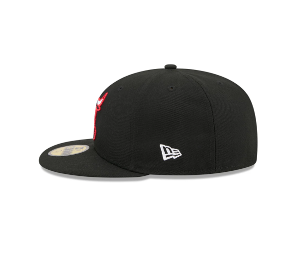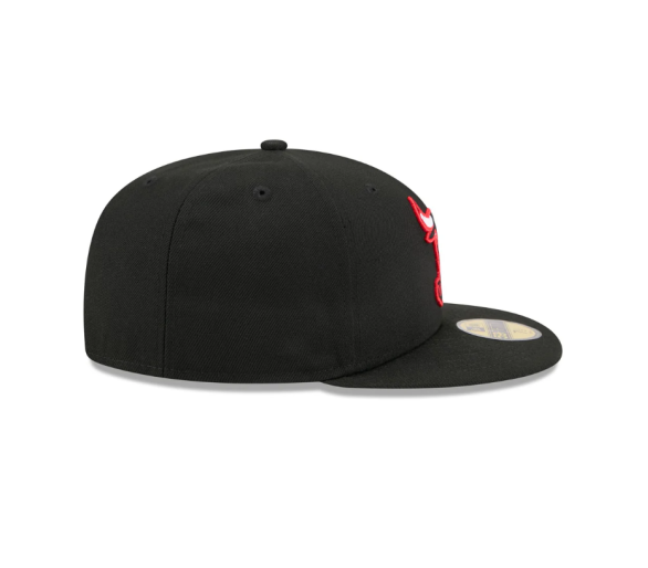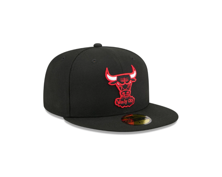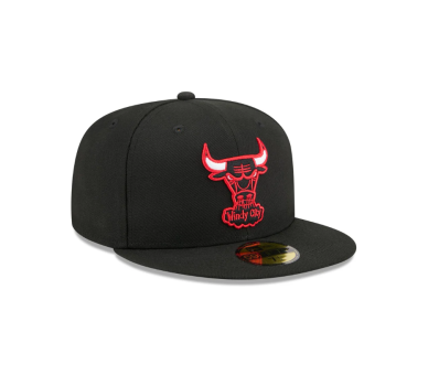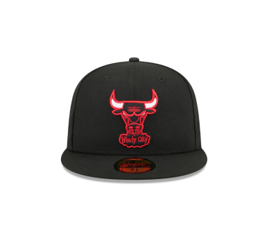 La casquette ajustée Chicago Bulls 1960-1970 Hardwood Classics 59FIFTY présente un logo vintage des Bulls brodé sur les panneaux avant, le logo NBA à l'arrière et une visière inférieure grise.