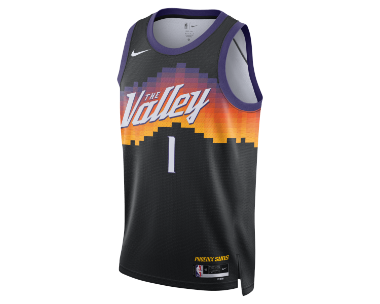 L'emblématique maillot « Valley » des Phoenix Suns fait son grand retour dans sa version originale pour la saison 2025-2026, célébrant l'identité audacieuse qui a conquis les fans dès 2020. Conçu pour refléter les paysages désertiques flamboyants au lever et au coucher du soleil, le maillot City Edition 2025-2026 des Phoenix Suns arbore le dégradé pixélisé caractéristique de la silhouette de Camelback Mountain et l'inscription « The Valley » sur la poitrine, rendant hommage à la ville, à sa culture et à la fierté inébranlable des fans des Suns à travers l'Arizona. Ce maillot, plébiscité par les supporters, reste un symbole de l'énergie, de la résilience et du lien profond qui unit l'équipe à la Vallée.