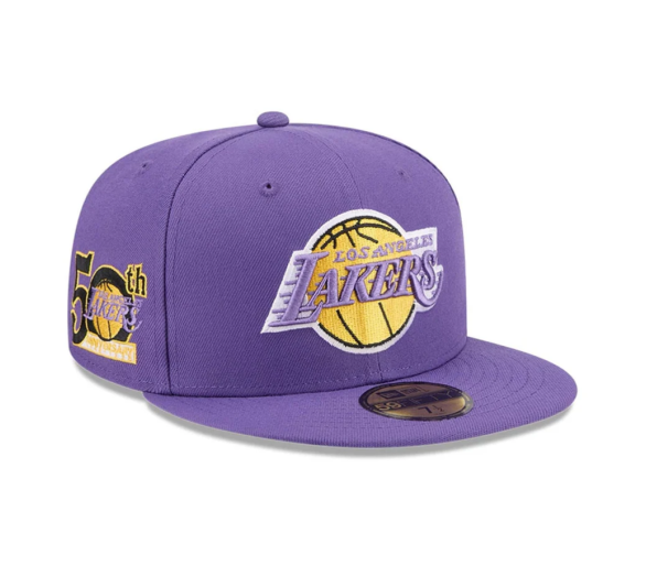 Casquette 59FIFTY Fitted LA Lakers NBA Hardwood Classic Violet logo Hardwood Classic LA Lakers sur le devant Patch Anniversaire des LA Lakers à droite Logo de la NBA à l’arrière New Era Flag brodé à gauche Couronne structurée Fitted Visière plate Sous-visière grise 100 % POLYESTER