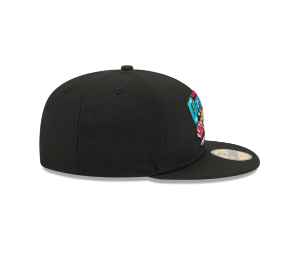 La casquette ajustée Vancouver Grizzlies 1995-2001 Hardwood Classics 59FIFTY présente un logo vintage brodé des Grizzlies sur les panneaux avant, le logo NBA à l'arrière et une visière inférieure grise.