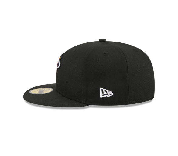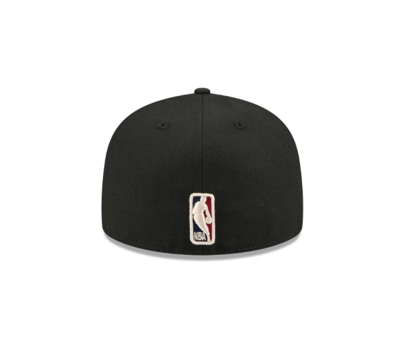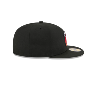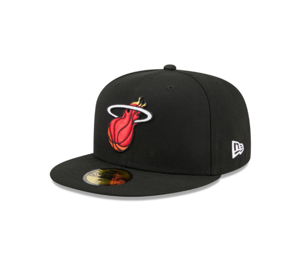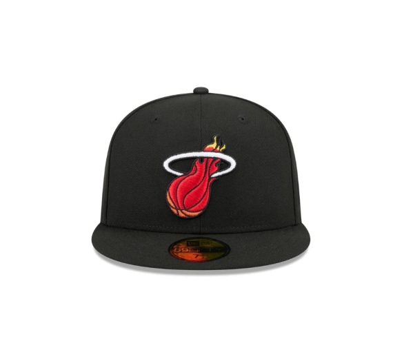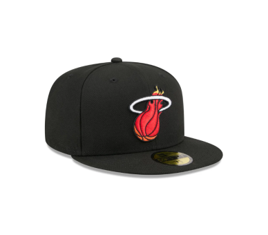 La casquette ajustée Miami Heat 1988-1998 Hardwood Classics 59FIFTY présente un logo Heat vintage brodé sur les panneaux avant, le logo NBA Logoman à l'arrière et une visière inférieure grise.